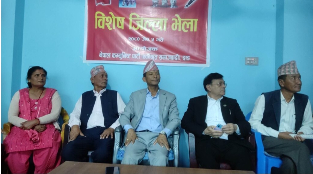 दाङ । नेकपा एकीकृत समाजवादी दाङको पार्टी पुनर्गठन भएको छ । एकीकृत समाजवादीको घोराहीमा शुक्रबार भएको विशेष जिल्ला भेलाले भूपबहादुर केसीको अध्यक्षतामा १ सय ७१ जना जिल्ला कार्यसमिति चयन गरेको हो । त्यस्तै पुनर्गठित एकीकृत समाजवादी दाङको उपाध्यक्षमा डिल्लीबहादुर पुन मगर,गणेश कुमार चौधरी र बिष्णु गुरुङ,सचिवमा जानका रेग्मी, उपसचिवमा डिलबहादुर पुन मगर,सुर्य बिसी र प्रेम […]