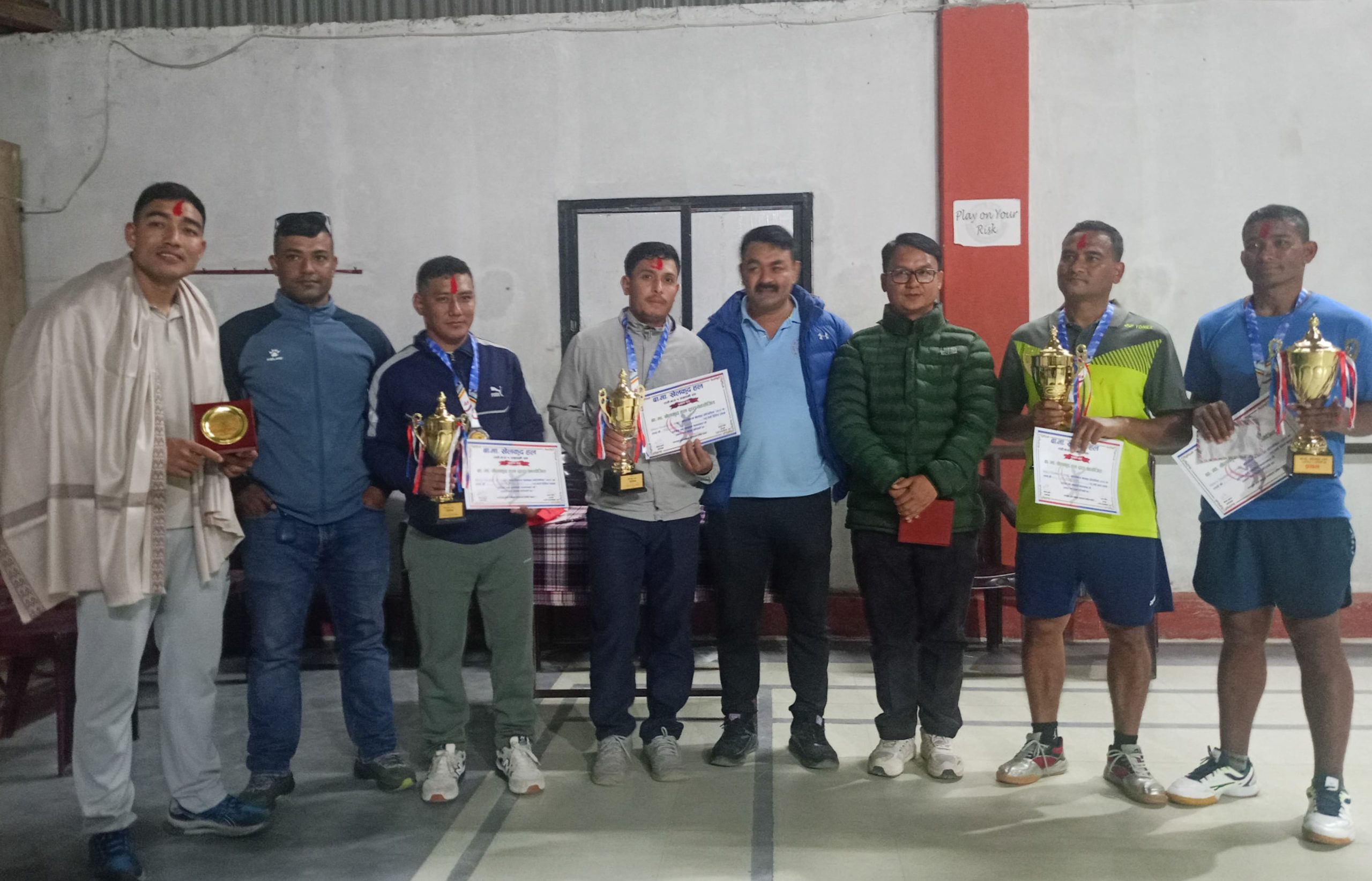 दाङ । देउखुरीको राप्ती गाउँपालिका वडा नम्बर –१ पाखापानीमा शनिबार सम्पन्न मेन्स डबल्स (सी लेभल) ब्याडमिन्टन खेलकुद प्रतियोगिता–२०८२ मा भुप बहादुर राना र राजु नेपालीको समूह विजयी भएको छ। बा.मा. खेलकुद हलको आयोजनामा सम्पन्न प्रतियोगिताको फाइनल खेलमा उत्कृष्ट प्रदर्शन गर्दै राना–नेपाली समूहले उपाधि हात पारेको हो । त्यस्तै प्रतियोगितामा बासु चौधरी र चेतन सारुको समूह […]