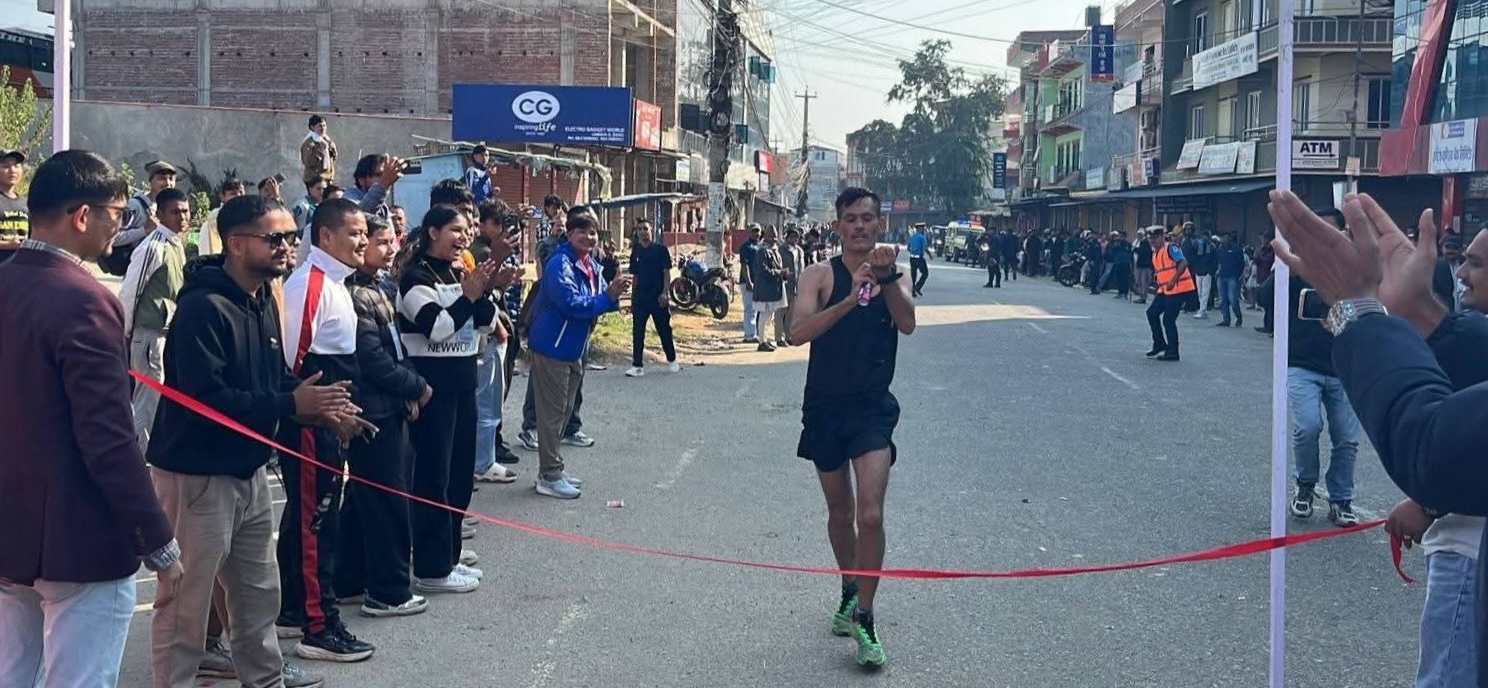 दाङ । देउखुरीको लमहीमा भएको १६ किलोमिटर पुरुष तथा ५ किलोमिटर महिला मिनि म्याराथन दौड प्रतियोगिता शनिबार सम्पन्न भएको छ । उक्त प्रतियोगितामा पुरुषतर्फ नेपाली सेना ज्वाला दल गण अर्जुनखोलामा कार्यरत यमराज खत्रीले उपाधि हात पारेका छन् । महिलातर्फ निरमाया चौधरीले पहिलो स्थान हासिल गरिन् । त्यस्तै मिनि म्याराथनमा ५२ जना पुरुष र १० जना […]