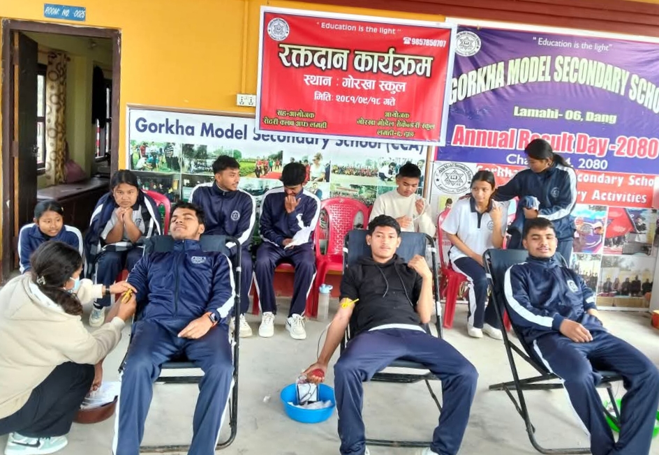 दाङ । गोरखा मोडेल सेकेण्डरी स्कुल लमहीले वार्षिकोत्सवको पूर्व सन्ध्याको अवसर पारेर रोटरी क्लव अफ लमहीसंग सहकार्य गरेर रक्तदान कार्यक्रम तथा सरसफाई गरेको छ । बिहिवार ५१ जना शिक्षक, विद्यार्थी तथा कर्मचारीले रक्तदान गरेको गोरखा मोडेल सेकेण्डरी स्कुल लमहीका प्राचार्य लोकमान रिजालले जानकारी दिए । हरेक वर्ष विद्यालयले वार्षिकोत्सवको मौका पारेर रक्तदान शिविरको आयोजना गर्दै […]