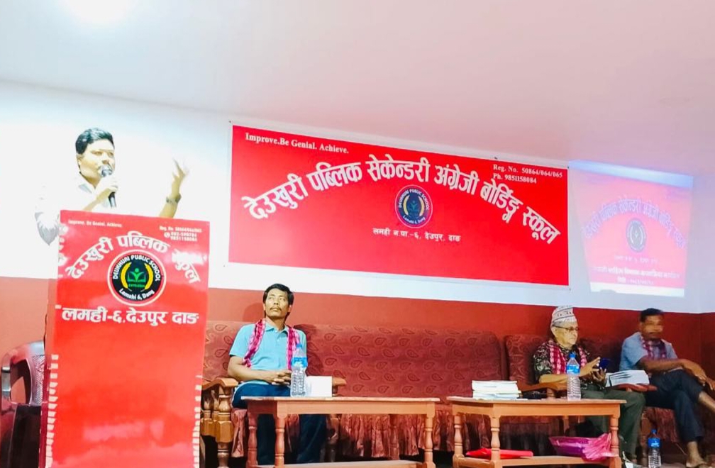 दाङ । लमही नगरपालिका वडा नम्बर ६ देउपुरमा रहेको देउखुरी पब्लिक सेकेन्डरी अङ्ग्रेजी बोर्डिङ स्कुलमा नेपाली साहित्य विषय अन्तरक्रिया कार्यक्रम शुक्रबार सम्पन्न भएको छ । विद्यालयका प्रधानाध्यापक भूमाण्डप केसीको अध्यक्षतामा सम्पन्न भएको उक्त कार्यक्रममा देउखुरी क्षेत्रका साहित्यकारहरु निम बहादुर थापा, छबिलाल कोपिला,गुरु प्रसाद कुमाल (बुलबुल)लागायत व्यक्तिहरुको उपस्थिति रहेकोे थियो । अतिरिक्त क्रियाकलाप समितिका सदस्य हेमन्त […]