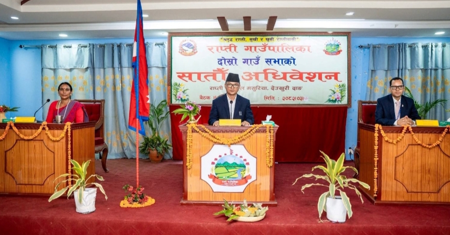 दाङ । देउखुरीको राप्ती गाउँपालिकाको दोस्रो गाउँसभाको सातौं अधिवेशन बिहीबार सम्पन्न भएको छ। गाउँसभाको सातौं अधिवेशनअन्तर्गत चौथो बैठकले उपाध्यक्ष कमलापति चौधरीद्वारा प्रस्तुत आर्थिक वर्ष २०८२/०८३ को वार्षिक बजेट तथा कार्यक्रमसँगै विभिन्न विधेयक र समितिहरूको प्रतिवेदन सर्वसम्मत रूपमा पारित गरेको हो । बैठकले राप्ती गाउँपालिकाको आर्थिक विधेयक, २०८२ तथा विनियोजन विधेयक,२०८२ पारित गर्नुका साथै हालसम्म कार्यपालिकाबाट […]