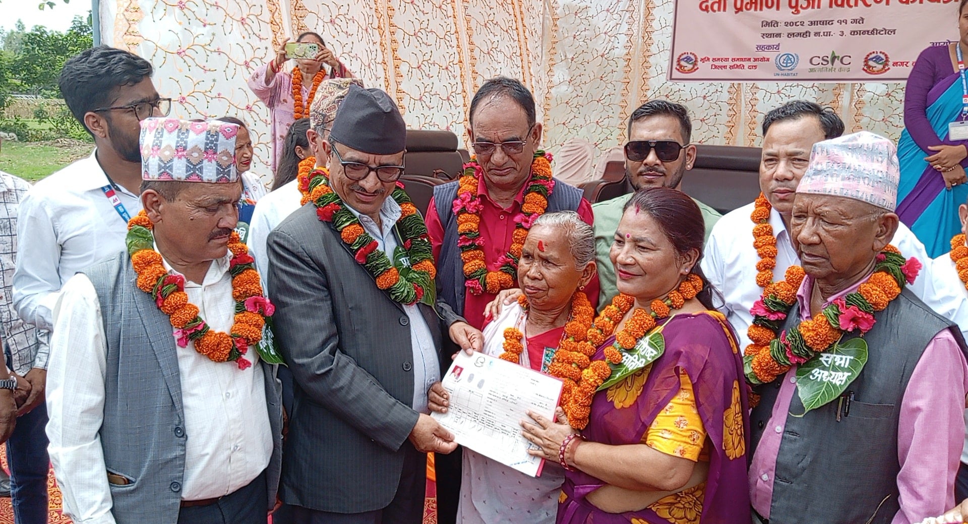 दाङ । लमहीका २३ जना भूमिहीन सुकुम्बासीलाई झण्डै १३ कठ्ठा जग्गाको लालपुर्जा वितरण गरिएको छ । भूमि सम्बन्धि समस्या समाधान आयोगले जिल्लामा पहिलोपटक जग्गाधनी प्रमाणपुर्जा वितरण गरेको हो । लमही नगरपालिका वडा नं.३ कान्छिगाउँका २३ घरधुरीलाई ८ धुरदेखि एक कठ्ठासम्मको बसोवासका लागि जग्गाधनी प्रमाणपुर्जा वितरण गरिएको छ । भूमि सम्बन्धि समस्या समाधान आयोगका केन्द्रीय अध्यक्ष […]