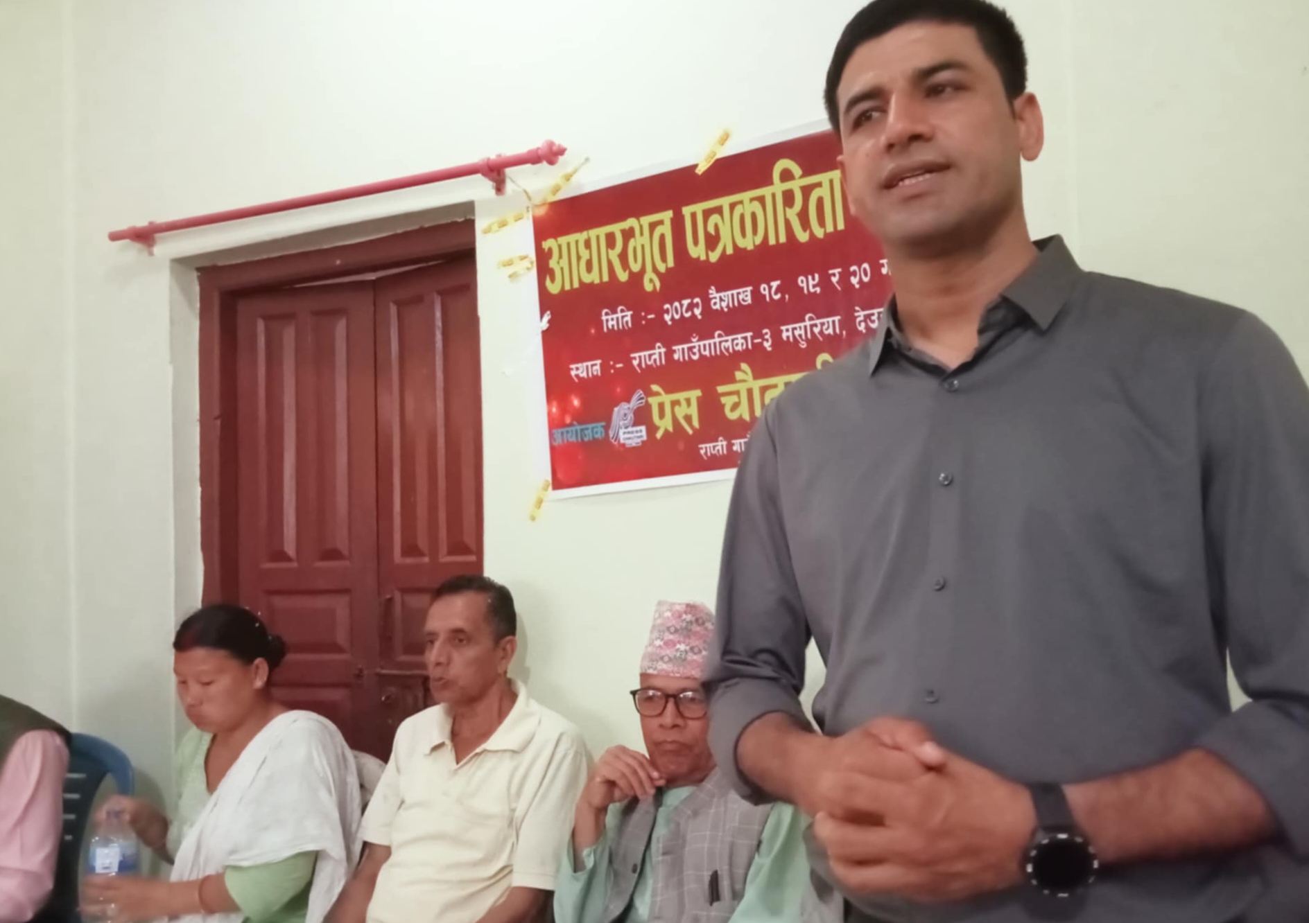 दाङ । प्रेस चौतारी नेपालका केन्द्रीय सदस्य दुर्गालाल केसीले नागरिकहरूलाई सही सूचना प्रदान गर्न अव हरेक स्थानीय तहहरूमा पत्रकार उत्पादन गर्न आवश्यक रहेको बताएका छन् । बिहीबार दाङको राप्ती गाउँपालिका- ३ मसुरियामा प्रेस चौतारी नेपाल राप्ती गाउँपालिका कमिटीले आयोजना गरेको तीन दिने आधारभूत पत्रकारिता तालिम उद्घाटन समारोहमा बोल्दै केन्द्रीय सदस्य केसीले सो कुरा बताएका हुन् […]
