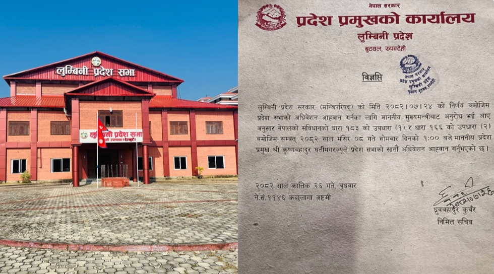 दाङ । लुम्बिनी प्रदेश सरकारका प्रमुख कृष्ण बहादुर घर्तीमगरले मंसिर ८ गतेदेखि प्रदेश सभाको हिउँदे(सातौं) अधिवेशन आह्वान गरेका छन् । प्रदेश मन्त्रिपरिषदको कार्तिक २४ गते को निर्णयका आधारमा प्रदेश सरकारका तर्फबाट मुख्यमन्त्री चेतनारायण आचार्यले अधिवेशन बोलाउन अनुरोध गरेपछि प्रदेश प्रमुख घर्तीमगरले संविधान अनुसार अधिवेशन आह्वान गरेका हुन् । त्यस्तै नेपालको संविधानको धारा १८३ को उपधारा […]