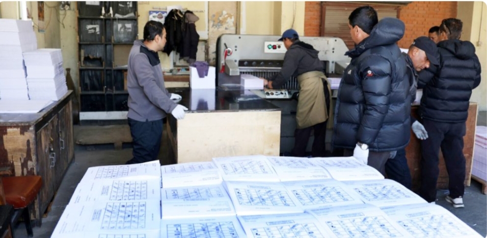 काठमाडौं । आगामी फागुन २१ गते हुने प्रतिनिधिसभा निर्वाचनका लागि १० लाख प्रति नमुना मतपत्रको छपाइ सकिएको निर्वाचन आयोगले जनाएको छ । जनक शिक्षा सामग्री केन्द्र लिमिटेडमा प्रत्यक्षतर्फको सेतो कागजमा रातो रङको र समानुपातिकतर्फ सेतो कागजमा कालो रङको नमुना मतपत्र छापिएको हो । आयोगले समानुपातिकतर्फको मतपत्रको छपाइ पनि छिटै सुरु हुने बताएको छ । त्यस्तै […]