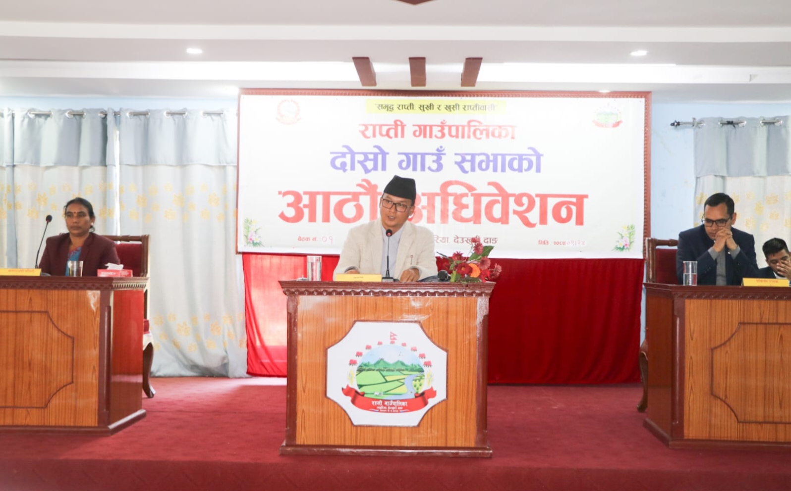 दाङ । देउखुरीको राप्ती गाउँपालिकाको दोस्रो गाउँसभाको आठौँ अधिवेशन बिहीबारदेखि सुरु भएको छ। स्थानीय सरकार सञ्चालन ऐन, २०७४ को दफा १९ तथा लुम्बिनी प्रदेशको गाउँ सभा/नगर सभाको (कार्य सञ्चालन) कार्यविधि ऐन, २०७६ को दफा ३(१) बमोजिम गाउँपालिका अध्यक्ष प्रकाश विष्टको अध्यक्षतामा अधिवेशनको सुरु भएको हो । त्यस्तै अधिवेशनको पहिलो बैठकमा सार्वजनिक महत्वका तीन वटा विधेयक […]