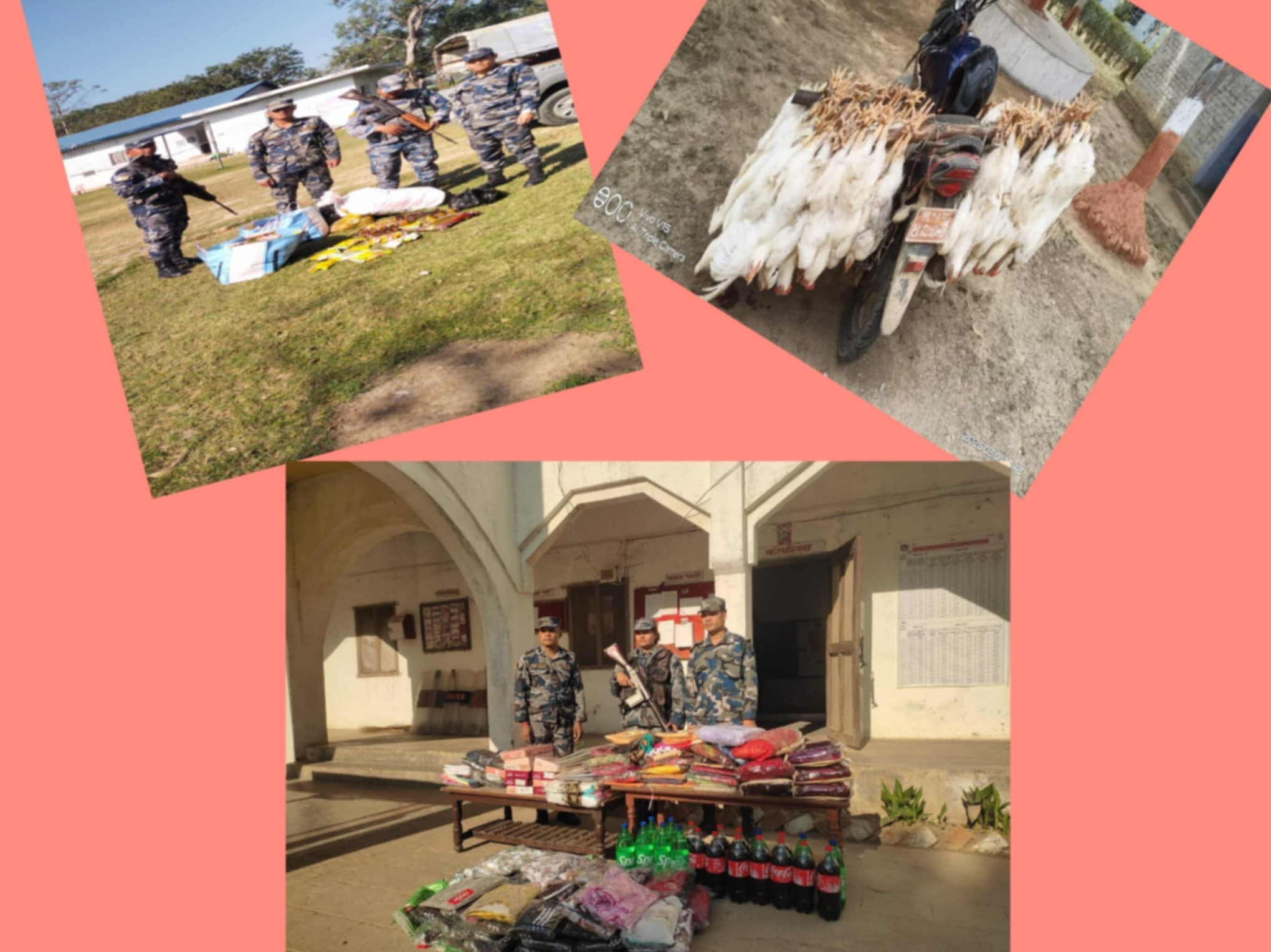 कपिलवस्तु । सशस्त्र प्रहरी बल,नेपाल प्रस्तावित सीमा सुरक्षा गुल्म कृष्णनगरबाट सोमबार कृष्णनगर नगरपालिका वडा नम्बर-२ ब्यारियर स्थित चेकपोस्टमा विशेष सूचनाको आधारमा अवैध सामान बरामद गरि कृष्णनगरदेखी चन्द्रौटा चल्ने यात्रुबाहक बसमा बसको सिटमुनी फल्स बक्स बनाई उक्त बक्स भित्र (साडी,लेडिज सुट,कुर्ता सुर्वाल,लेडिज अण्डर वियर, लेडिज वानपिस,चिसो पिय पदार्थ, ड्राई फ्रुट्स काजु, बदाम,पेस्ता र खजुर) आदी अबैध […]