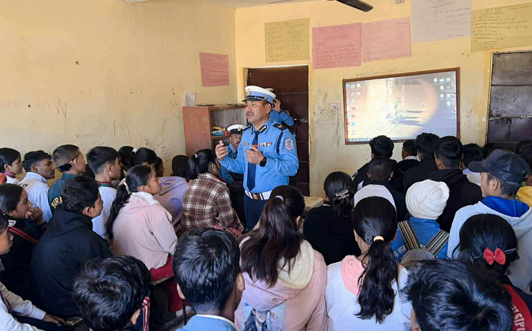 दाङ । जिल्ला ट्राफिक प्रहरी कार्यालय दाङले विद्यालयमा पुगेर विद्यार्थीहरुलाई ट्राफिक सचेतना सम्बन्धि प्रशिक्षण प्रदान गरेको छ । ट्राफिक प्रहरी कार्यालय दाङ र नेपाल रेडक्रस सोसाइटी जिल्ला शाखा दाङ तथा नेपाल जुनियर रेडक्रसको संयुक्त आयोजनामा दंगिशरण गाउँपालिका वडा नम्बर ६ मा रहेको भानु मा.वि. प्रसढुवामा जिल्लाका विभिन्न विद्यालयका शिक्षक, विद्यार्थीहरु गरि ११५ जनालाई ट्राफिक सम्बन्धि […]