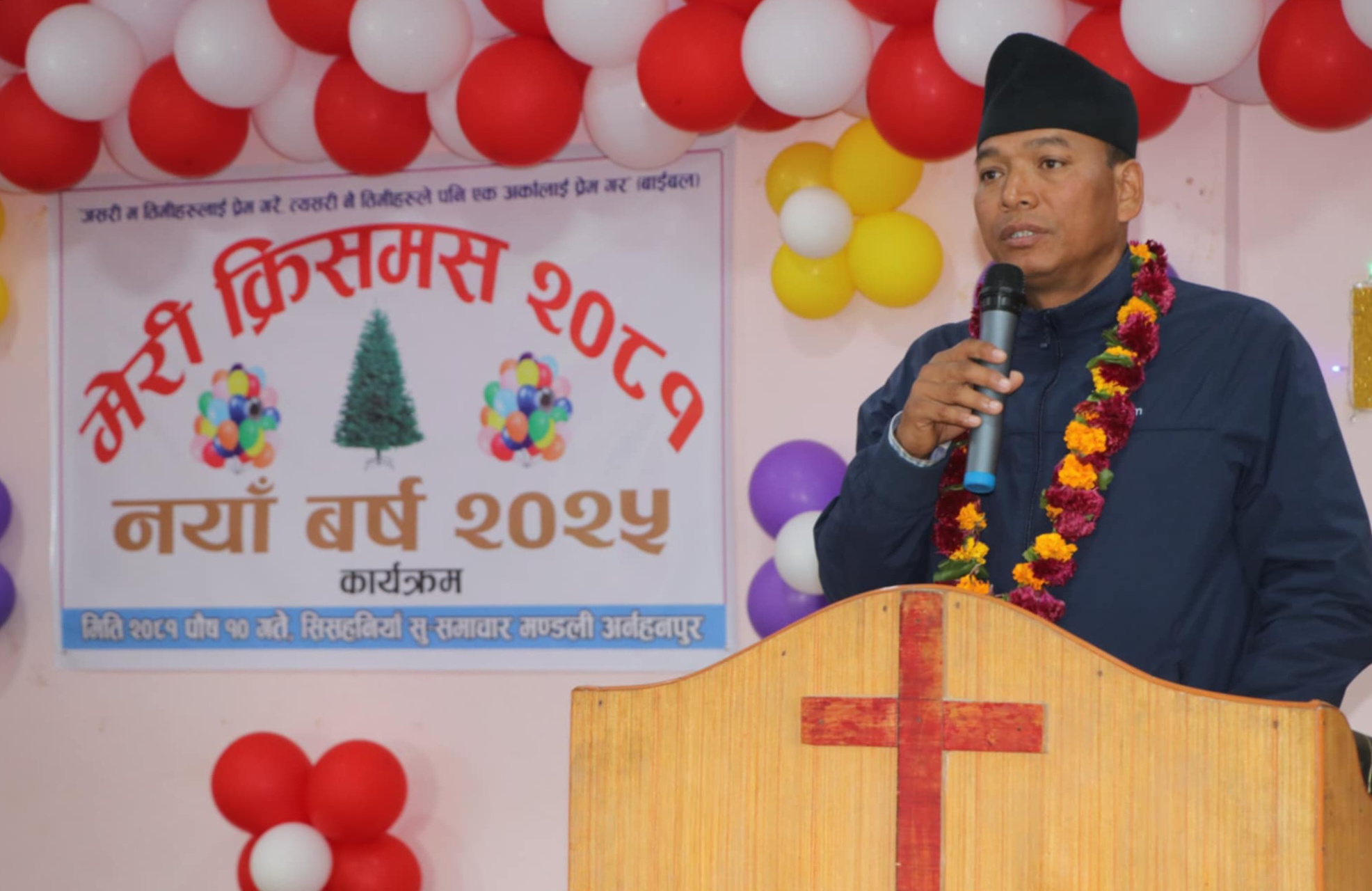 दाङ । लुम्बिनी प्रदेश सभा सदस्य तथा पूर्व भौतिक विकास मन्त्री इन्द्रजित थारुले क्रिसमस पर्वले राष्ट्रिय एकता,धार्मिक सहिष्णुता र सामाजिक सद्भावलाई मजबुत बनाउन महत्त्वपूर्ण भूमिका खेल्ने बताएका छन् । बुधबार राप्ती गाउँपालिका वडा नम्बर ७ अर्नहनपुरमा सिसहनियाँ सु-समाचार मण्डलीद्वारा आयोजित शुभकामना आदानप्रदान तथा मेरी क्रिसमस २०८१ कार्यक्रममा बोल्दै उनले नेपाललाई बहुजातीय,बहुभाषिक,बहुधार्मिक र बहुसांस्कृतिक विविधताले सम्पन्न […]