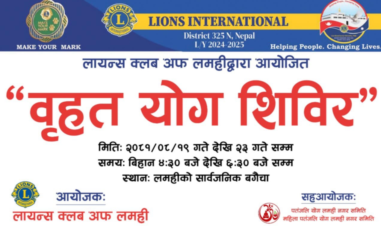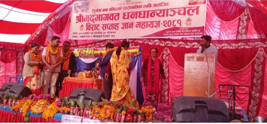 दाङ । देउखुरीको लमही नगरपालिका वडा नम्बर -८ निम्बुखुट्टीमा सोमबार आजदेखी श्रीमदभागवत धनधान्यान्चल विराट सप्ताह ज्ञान महायज्ञ सुरु भएको छ । टेङ्नैया बाबा मन्दिरको स्तरउन्नतीका लागि महायज्ञ शुरु गरेको टेङ्नैया बाबा धार्मिक क्षेत्र विकास समितीका अध्यक्ष दिकपाल योगीले जानकारी दिए । यो महायज्ञ मंसिर १७ देखि मंसिर २४ गतेसम्म चल्ने बताइएको छ । महायज्ञको उद्घाटन […]