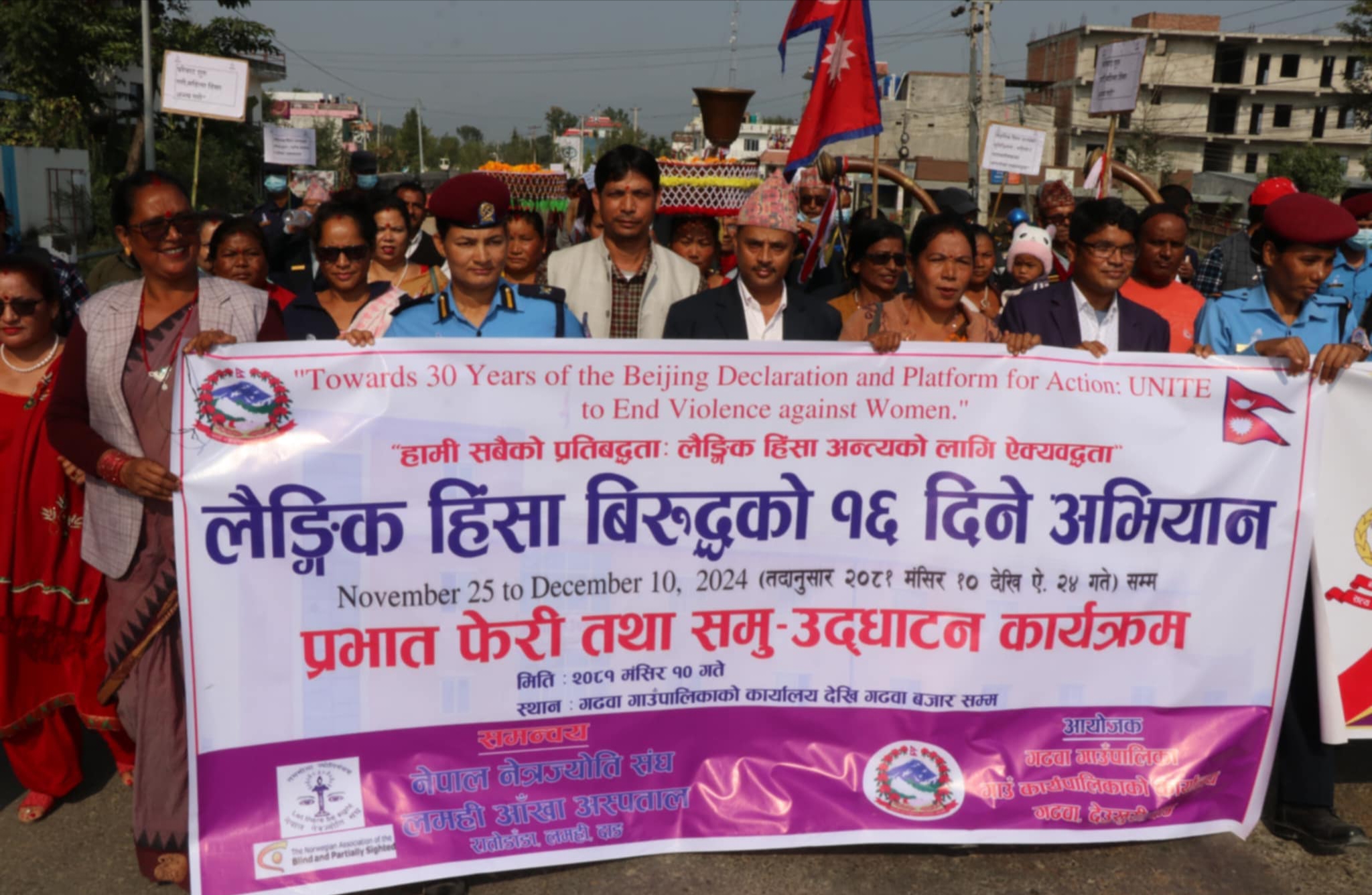 दाङ । हामी सबैको प्रतिबद्धता:लैङ्गिक हिंसा अन्त्यको लागि ऐक्यबद्ध भन्ने मुल नाराका साथ गढवा गाउँपालिकाको आयोजना तथा नेपाल नेत्र ज्योति संघ लमही आँखा अस्पताल लमहीको समन्वयमा लैङ्गिक हिंसा बिरुद्धको १६ दिने अभियानको प्रभात फेरी तथा समुद्घाटन कार्यक्रम आज गढवामा सम्पन्न भएको छ । लैङ्गिक हिंसा बिरुद्धको १६ दिने अभियानको गढवा गाउँपालिका अध्यक्ष यमनारायण शर्मा पोख्रेल […]