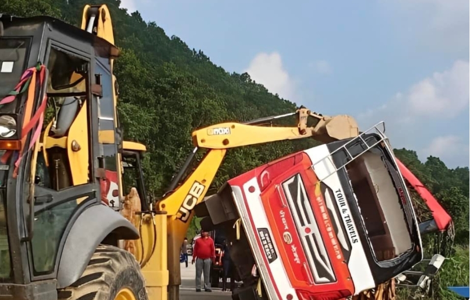 काठमाडौं । काठमाडौँदेखि भोजपुर जाँदै गरेको यात्रुबाहक बस मदन भण्डारी राजमार्गअन्तर्गत सिन्धुलीको हरिहरपुरगढी गाउँपालिका वडा नम्बर,५ महेन्द्रझ्याडी स्थित भलखाडामा दुर्घटना भएको छ । प्रहरीका अनुसार आज दिउँसो ३ बजे आसपासमा दुर्घटना भएको जनाइएको छ । बागमती प्रदेश ०१००६ ख ६७८५ नम्बरको बस दुर्घटना हुँदा दुई जनाको घटनास्थलमै मृत्यु भएको सिन्धुली जिल्ला प्रहरी कार्यालयका प्रहरी उपरीक्षक […]