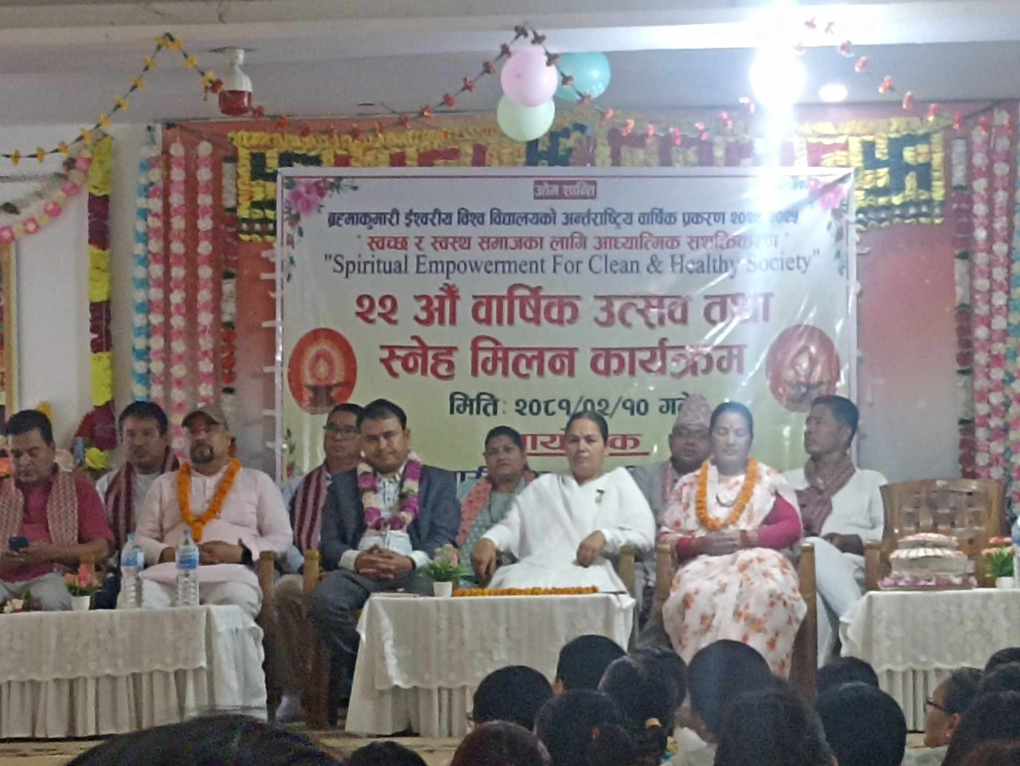 दाङ । ब्रहमाकुमारी इश्वरीय बिश्वबिधालय लमहीको २२ औ बार्षिक साधारण शभा तथा बुद्ध जयन्तीको अबसरमा स्नेह मिलन कार्यक्रम लमहीमा सम्पन्न भएको छ । ब्रहमाकुमारी ईश्वरीय बिश्वबिधालय लमहीका संचालक ईश्वराको अध्यक्षता तथा लुम्बिनी प्रदेशका भौतिक योजना मन्त्री धर्म बहादुर चौधरीको प्रमुख आतिथ्यता र लमही नगरपालिकाका उपप्रमुख लक्ष्मी योगीको बिशिष्ट आतिथ्यतामा कार्यक्रम भएको हो । कार्यक्रमका प्रमुख […]