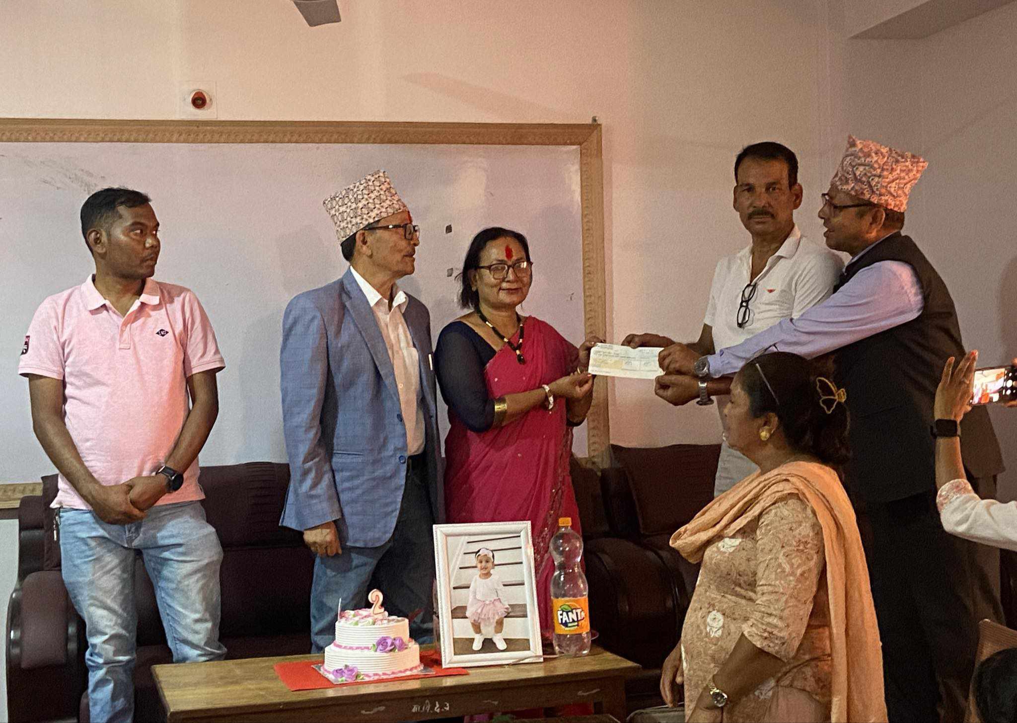 दाङ । जन्मोत्सबको अबसरमा बिद्यालयमा अक्षयकोष स्थापना गरिएको छ । लमही निवासी पार्बती थापाले आफ्नो नातीनी साईसा पौडेलको दोस्रो जन्मोत्सबको अबसरमा आदर्श माबी देउपुरमा १ लाख ११ हजार १ सय ११ रुपैयाको अक्षयकोष स्थापना गरेकी हुन । साईसा जन्मोत्सब अक्षयकोषको ब्याजबाट आएको रकमले बिद्यालयको प्रत्यक बार्षिकोत्सबमा अनाथ तथा टुहुरा टुहुरी एकजना छात्र र एकजना छात्रालाई […]