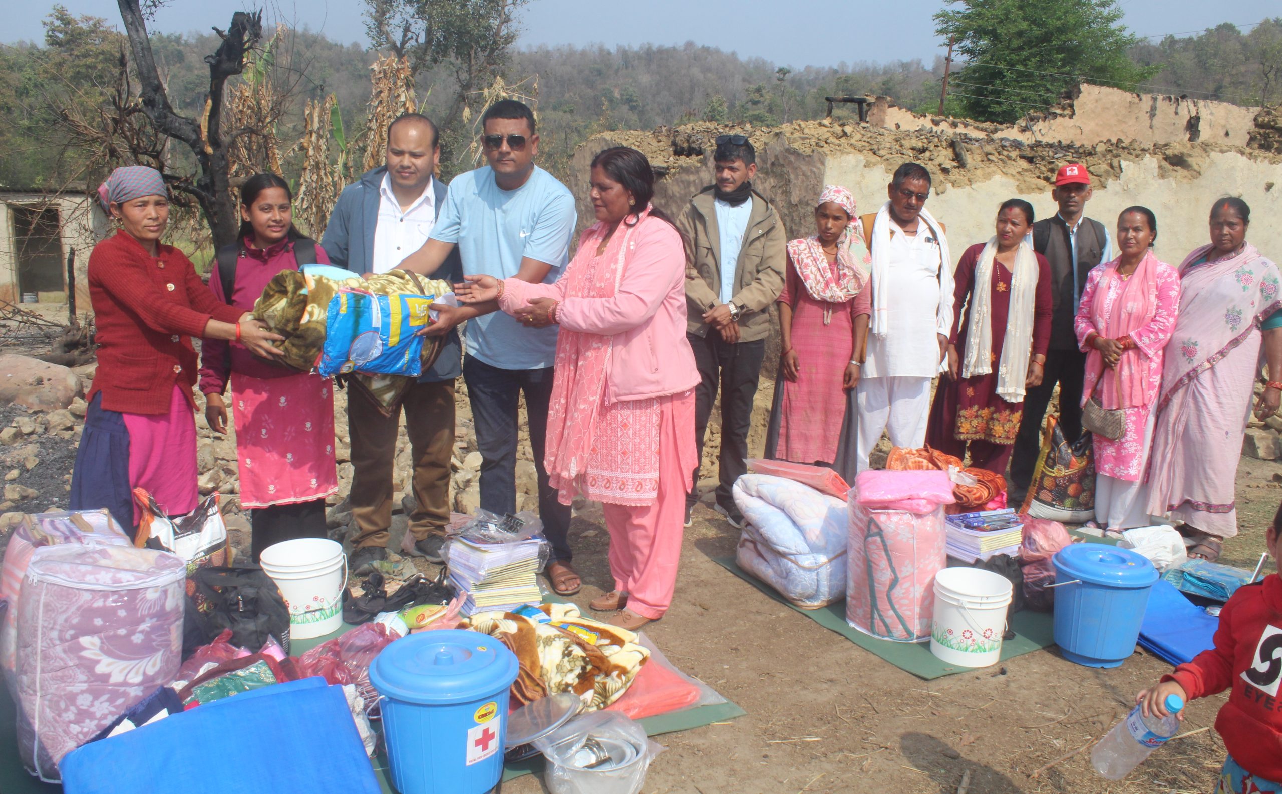 दाङ । देउखुरीको राजपुर गाउँपलिका र विभिन्न संघ,संस्थाले पालिकाको वडा नम्बर ४ मुङ्ग्रेठा खोलाका अग्नि पीडितलाई बुधबार राहत प्रदान गरेको छ । यहीँ चैत ६ गते आगलागीबाट खिमराज साहु,निर्मला भण्डारी,झुपलाल रानाको घर,गोठ जलेर नस्ट भएपछि घर बिहिन भएका अग्नि पीडितहरुलाइ सम्पूर्ण निकायबाट संकलित भएको नगद सहितको राहत गाउँपालिका मार्फत प्रदान गरिएको हो । राजपुर गाउँपालिकाले […]