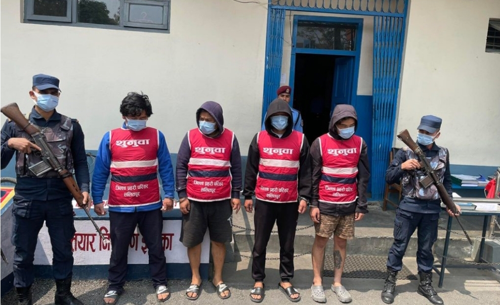 काठमाडौं । ललितपुर महानगरपालिका-२६ ढोलाहिटीको घटनामा संलग्न भएका आरोपीहरूलाई प्रहरीले सार्वजनिक गरेको छ । आइतबार राति होली खेलेर खाजा खान ढोलाहिटीको डी पोपिना खाजाघरमा पुगेर मदिरा सेवन गरेका युवाबीच चक्कु हानाहान हुँदा २ जनाको हत्या भएको थियो । जिल्ला प्रहरी परिसर ललितपुरले आज बिहान पत्रकार सम्मेलन गरी उक्त घटनामा संलगन् भएका मुख्य चार आरोपीलाई सार्वजनिक […]