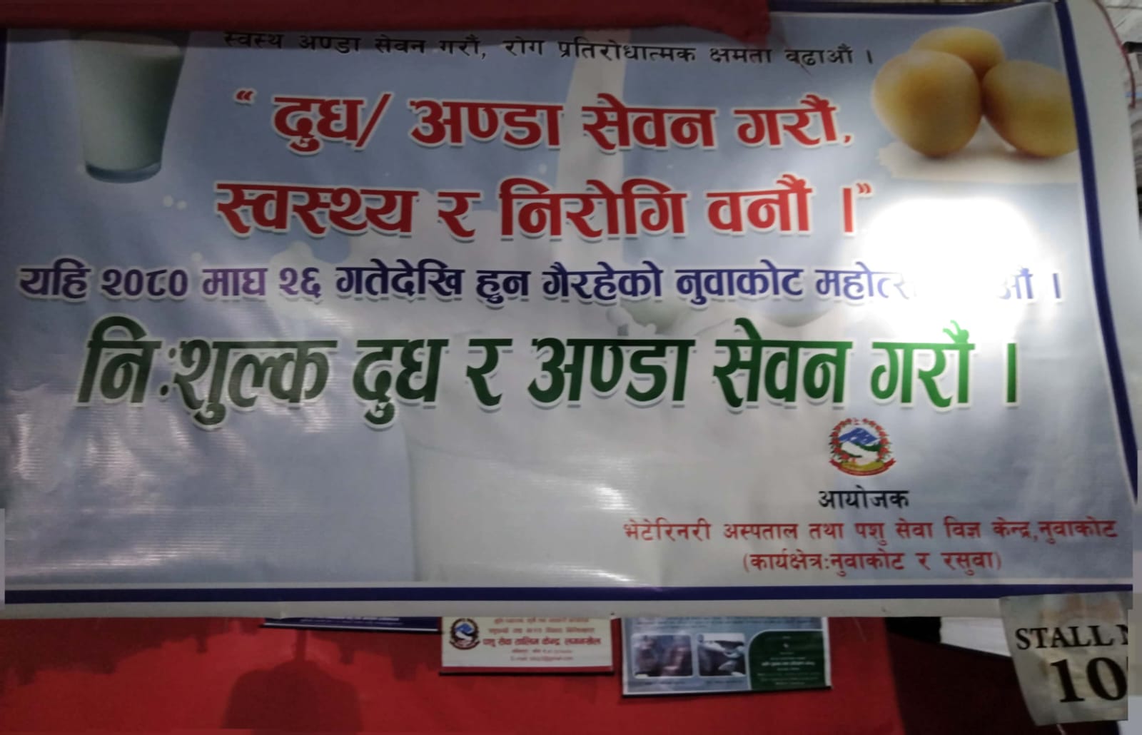 नुवाकोट । नुवाकोट उद्योग वार्णिज्य संघ नुवाकोटको आयाेजनामा आयाेजित ८ औं नुवाकोट महाेत्सव २०८० काे अबसरमा भेटेनरि अस्पताल तथा पशु सेवा विज्ञ केन्द्र (कार्यक्षेत्र नुवाकोट र रसुवा) बिदुर नुवाकोटकाे संयाेजनमा नुवाकाेट पाेल्ट्रि व्यवसायि संघ र नुवाकाेट अण्डा व्यवसायि संघकाे सहकार्यमा नि:शुल्क अण्डा तथा दूध वितरण भएको छ । व्यवसायिहरुबाट बजारमा दूध र अण्डाकाे खपत कम […]