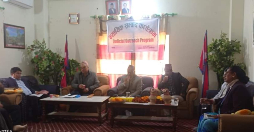 दाङ । उच्च अदालत तुलसीपुरको आयोजना तथा गढवा गाउँपालिकासंगको समन्वय सहकार्यमा शुक्रवार कानून अधिकारी र नागरिकका बिचमा गढवामा न्यायिक संबाद सम्पन्न भएको छ । उच्च अदालत तुलसीपुरका मुख्य न्यायधिश नित्यानन्द पाण्डेको अध्यक्षता र गढवा गाउँपालिकाका अध्यक्ष यमनारायण शर्मा पोखे्रलको प्रमुख आतिथ्यमा कानून तथा न्याय प्रणलीका बारेमा कानून अधिकारी र नागरिकहरुका बिचमा दोहोरो संबाद भएको हो […]