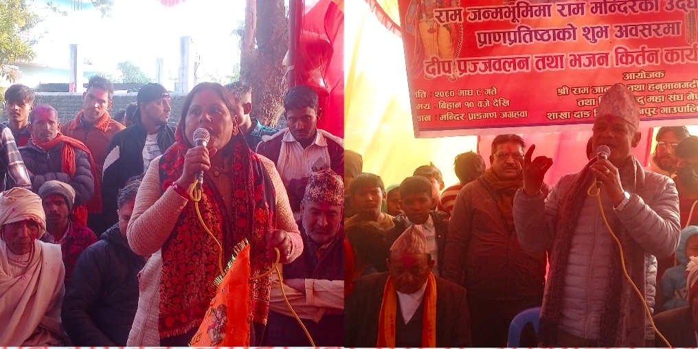 दाङ । राम जन्मभुमिमा राम मन्दिरको उद्घाटन तथा प्राणप्रतिष्ठाको अवसर पारेर राजपुरको जंग्रहवामा रहेको राम मन्दिर परिसरमा सोमबार दीप प्रज्जवलन तथा भजनकिर्तन कार्यक्रम सम्पन्न भएको छ । विश्व हिन्दु महासंघ नेपाल राजपुर गाउँपालिका अध्यक्ष मिन्तीराम यादवको अध्यक्षता तथा विश्व हिन्दु महा संघ नेपाल दाङ जिल्ला उपाध्यक्ष दामोदर पाण्डेको प्रमुख आतिथ्यता तथा राजपुर गाउँपालिकाकी उपाध्यक्ष धनपती […]