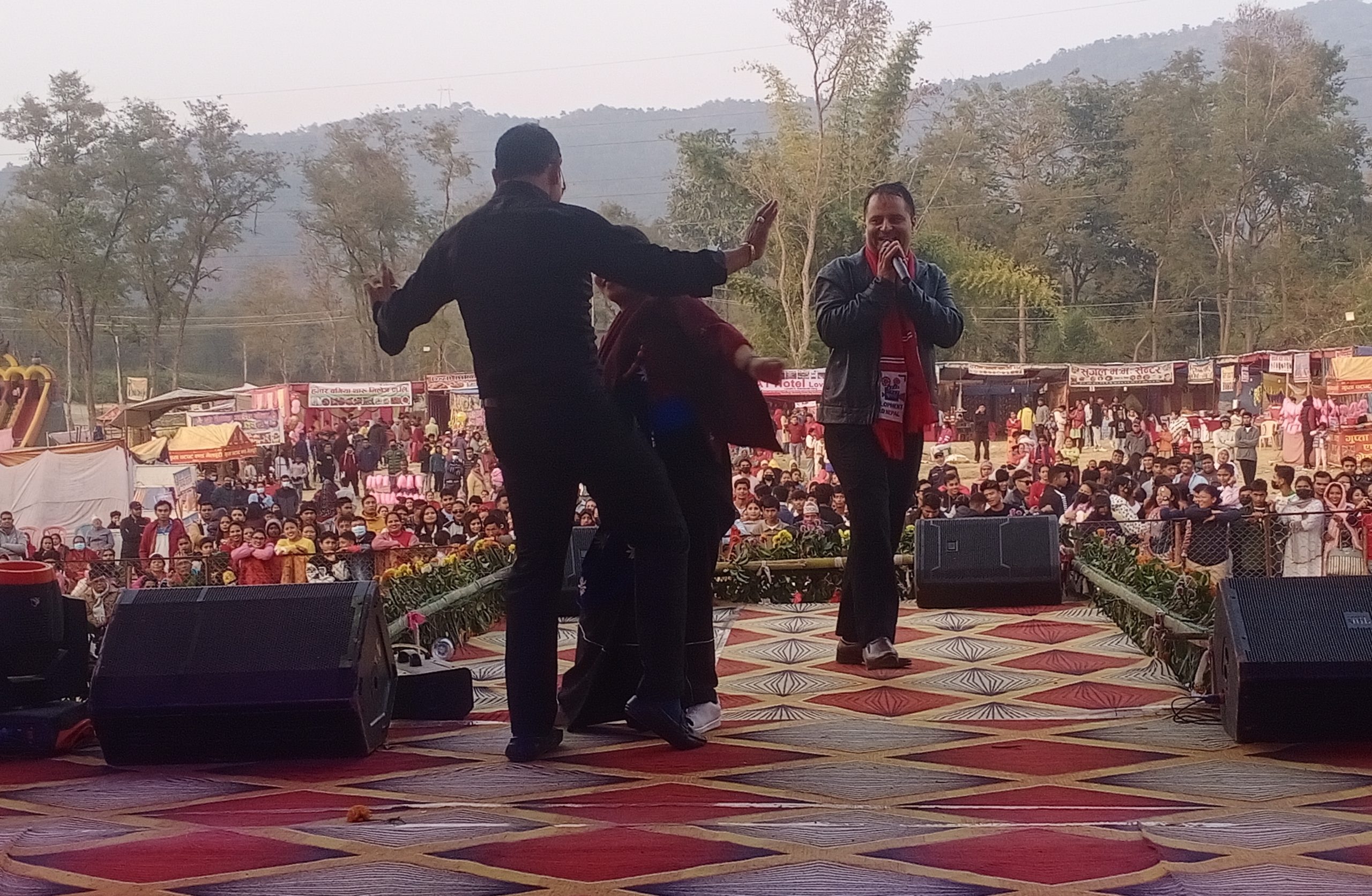 दाङ । लमहीमा संचालन रहेको दोस्रो कृषि,पर्यटन,उद्योग तथा व्यापारी महोत्सव २०८० को दोस्रो दिन लोक दोहोरी गायक चन्द्र शर्मा र भुमिका गिरीले आफ्नो प्रस्तुतिद्वारा दर्शनकालाई भरपुर मनोरञ्जन दिएका छन् । महोत्सवको दोस्रो दिनको पहिलो प्रस्तुतिमा लोक दोहोरी गायक चन्द्र शर्माले बाच्छीले धान खायो,उखु गुलीयो,चरीले गुड सार्यो लगायत एक दर्जन बढी सांगितिक प्रस्तुति प्रस्तुत गर्नु भएको […]