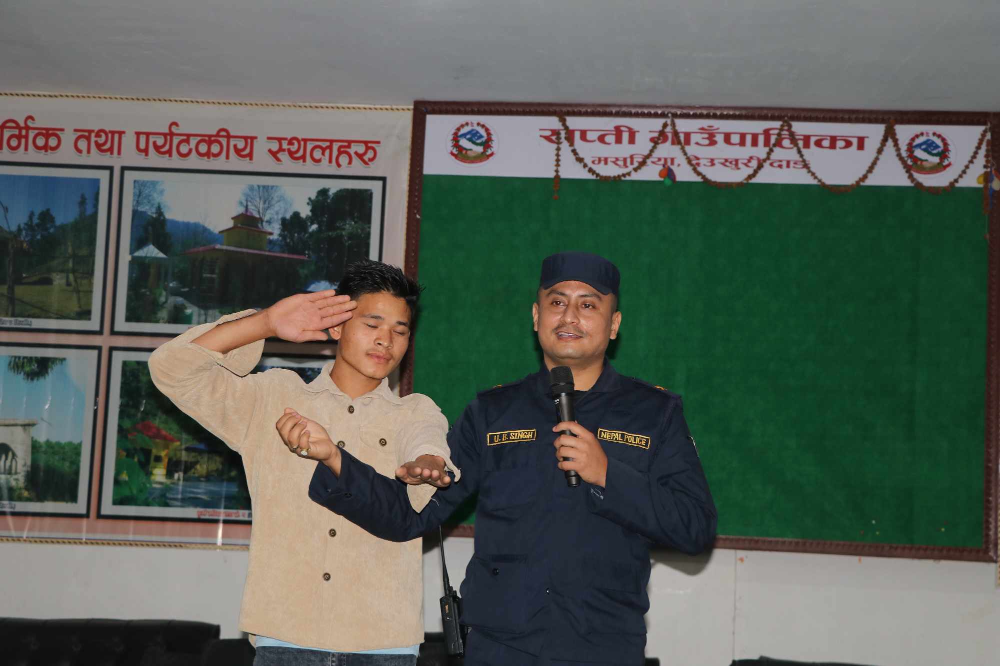 दाङ । राप्ती गाउँपालिका दाङले नेपाल प्रहरी , सशस्त्र प्रहरी,नेपाली सेना लगायतका सुरक्षा निकायहरुमा भर्ना हुन चाहाने युवायुवतीहरुलाई भर्ना प्रक्रिया सम्बन्धी एक दिने अभिमुखीकरण कार्यक्रम शुक्रबार पालिकाकाे सभाहल मसुरीयामा सम्पन्न गरेको छ। सुरक्षा निकायहरुमा भर्ना हुन चाहाने युवायुवतीहरुलाई भर्ना प्रक्रिया सम्बन्धी जानकारी गराउने र त्यस क्षेत्र तर्फ अग्रसर गराउने उदेश्यले अभिमुखीकरण कार्यक्रम गरेको हाे। कार्यक्रममा […]