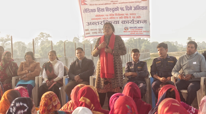 दाङ । राजपुर गाउँपालिका महिला तथा बालबालिका शाखाको आयोजनामा बुधबार ५ नम्बर वडाको जंग्रहवामा लैङ्गिक हिंसा विरुद्ध सम्बन्धि एक दिने अन्तरक्रिया कार्यक्रम सम्पन्न भएको छ । राजपुर गाउँपालिका वडा नम्बर ५ का वडा अध्यक्ष टंक बहादुर विष्टको अध्यक्षता तथा राजपुर गाउँपालिकाका उपाध्यक्ष धनपती देवी यादवको प्रमुख आतिथ्यतामा सम्पन्न भएको अन्तरक्रिया कार्यक्रममा प्रमुख अतिथि यादवले लैङ्गिक […]