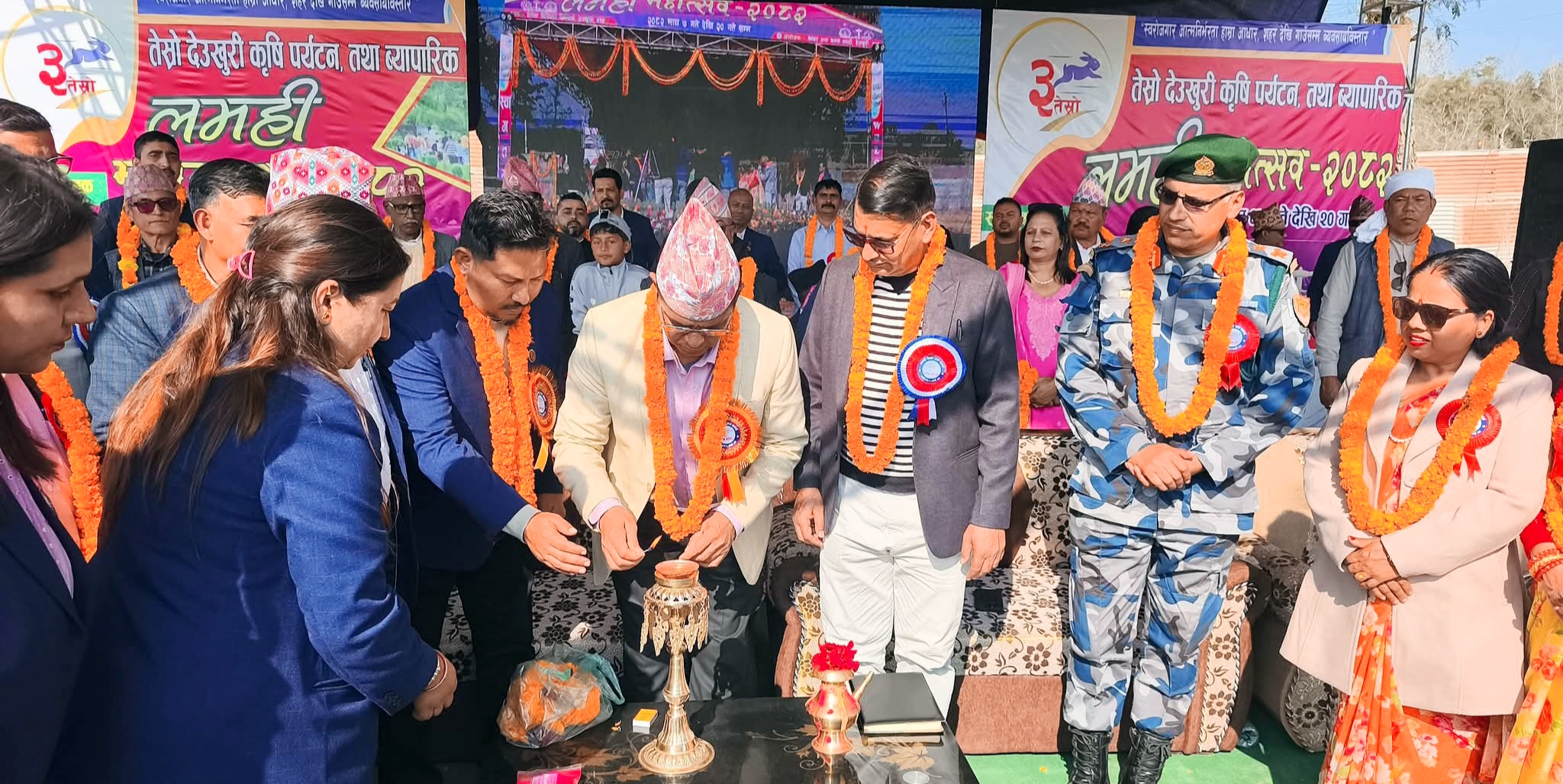 दाङ । देउखुरीको लमहीमा तेस्रो देउखुरी कृषि, पर्यटन तथा व्यापारीक महोत्सवको बुधबार एक औपचारिक कार्यक्रमका बीच उद्घाटन भएको छ । बाजा-गाजा,झाँकी सहित प्रभातफेरी अघि बढ्यो । थारु, मगर,नेवार लगायत समुदायका झाँकीले नगरको परिक्रमा गर्यो । परम्परादेखि चल्दै आएका रिती,संस्कृति र परम्परा झाँकी मार्फत देखाईयो । अनि सुरु भयो तेस्रो देउखुरी कृषि, पर्यटन तथा व्यापारीक महोत्सव–२०८२ […]