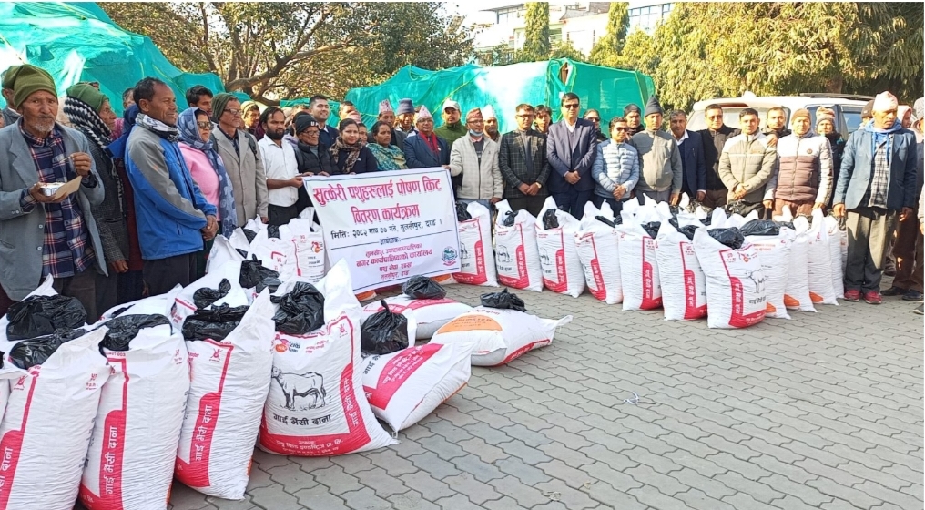 दाङ । तुलसीपुर उपमहानगरपालिकाले सुत्केरी पशुका लागी बुधबार पोषण किट वितरण गरेको छ । सुत्केरी अवस्थामा रहेका पशुहरुको स्वास्थ्य सुधार र उत्पादन क्षमता वृद्धि गर्ने उद्देश्यले पोषण किट वितरण गरिएको तुलसीपुर उपमहानगरपालिकाका पशु सेवा शाखा प्रमुख डाक्टर मनोज ओलीले जानकारी दिए । त्यस्तै उनका अनुसार पशु सेवा शाखाको आयोजनामा आज एक कार्यक्रमका बिच सुल्केरी गाई–भैंसी […]