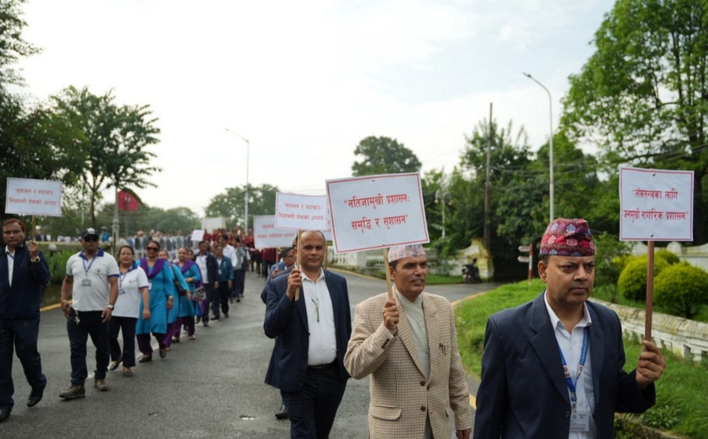 काठमाडौँ । आज आइतबार २२ औँ निजामती सेवा दिवस, देशभरका कर्मचारीद्वारा धुमधामका साथ दिवस मनाइँदै छ । व्यावसायिक र सृजनशील प्रशासन : विकास,समृद्धि र सुशासन भन्ने मूल नाराका साथ आज २२ औँ निजामती सेवा दिवस मनाउन लागिएको हो । त्यस्तै सो अवसरमा सिंहदरबारबाट प्रभातफेरी कार्यक्रम आयोजना गरी न्यूप्लाजा, प्रदर्शनीमार्ग हुँदै नेपाल पुलिस क्लब पुगी मूल […]
