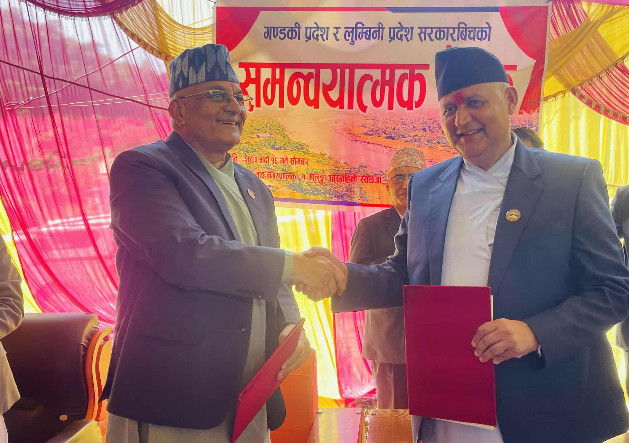 लुम्बिनी । लुम्बिनी र गण्डकी प्रदेशको दोस्रो मुख्यमन्त्रीस्तरीय संयुक्त बैठक सोमबार स्याङ्जाको गल्याङ्ग नगरपालिका वडा नम्बर -१ मालुङ्गा,खाँडामा सम्पन्न भएको छ । बैठकले प्रदेशको साझा विकासका लागि नौ बुँदे निर्णय गर्दै सहकार्यलाई अझ प्रभावकारी बनाउने प्रतिवद्धता जनाएको छ । लुम्बिनी प्रदेशका मुख्यमन्त्री चेतनारायण आचार्य र गण्डकी प्रदेशका मुख्यमन्त्री सुरेन्द्रराज पाण्डेले निर्णयपत्रमा हस्ताक्षर गरेका हुन् । […]