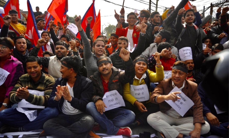 काठमाडौं । लिपुलेक हुँदै सीमापार व्यापार गर्ने भारत–चीनको सहमतिको विरोध गर्दै संयुक्त विद्यार्थी संगठनले काठमाडौंस्थीत भारतीय दूतावास अगाडि विरोध प्रदर्शन गरेका छन् । लिपुलेक नेपालको सार्वभौम भू–भाग भएकाले भारत–चीनबीच सो क्षेत्रमा व्यापारिक नाका खोल्ने निर्णय विरुद्ध संयुक्त विद्यार्थी संगठनले शनिबार दुतावास अगाडी प्रदर्शन गरेका हुन् । नेपाली भूमिमा हुने यस्ता सम्झौता र हस्ताक्षरहरूले नेपालको राष्ट्रियता,भौगोलिक […]