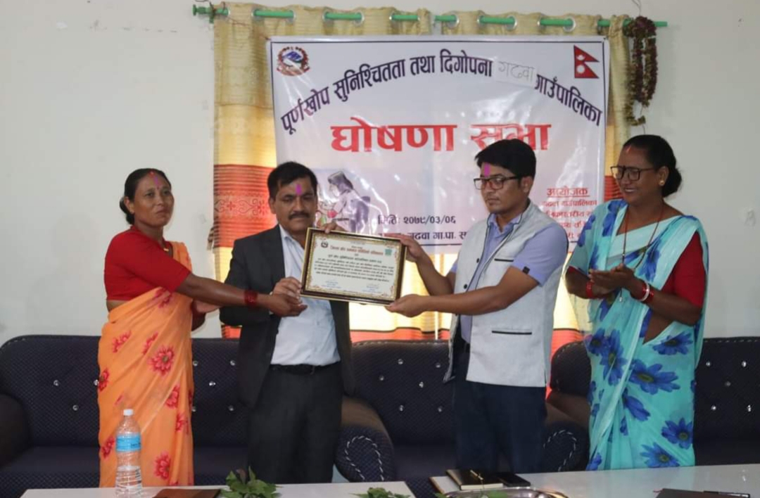 दाङ । गढवा गाउँपालिकालाई पूणर् खोप सुनिश्चित पालिका घोषणा गरिएको छ । जिल्ला समन्वय समितिका प्रमुख नित्यान्द शर्माले गढवा गाउँपालिकालाई पूर्ण खोप सुनिश्चित पालिकाको रुपमा घोषणा गर्नुभएको हो । गढवा गाउँपालिकाभित्र चालु आर्थिक वर्षमा जन्मेदेखि १५ महिनाका ८९६ र जन्मेको १६ महिनादेखि २३ महिनासम्मका ७५० जना बालबालिकाले नियमित खोप लगाएका छन् । बार्षिक लक्ष्यअनुसार ८० […]