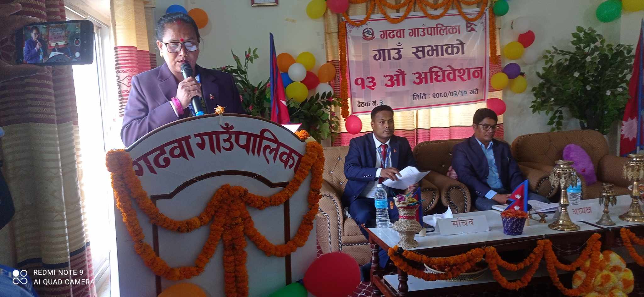 दाङ । देउखुरीको गढवा गाउँपालिकाले आगामी आर्थिक बर्षको बजेट तथा कार्यक्रम गाउँसभाको १३ औं अधिवेशन मार्फत आईतबार सभामा प्रस्तुत गरेको छ । गाउँपालिकाका अध्यक्ष यमनारायण शर्मा पोख्रेलको अध्यक्षतामा भएको गाउँसभामा गाउँपालिकाका उपाध्यक्ष शारदा कुमारी चौधरीले पालिकाको आर्थिक बिधेयक र बजेट तथा कार्यक्रम सभामा प्रस्तुत गर्नुभएको हो । यसैगरी गढवा गाउँपालिकाले १३ औं गाउँसभाको अधिवेशन मार्फत […]