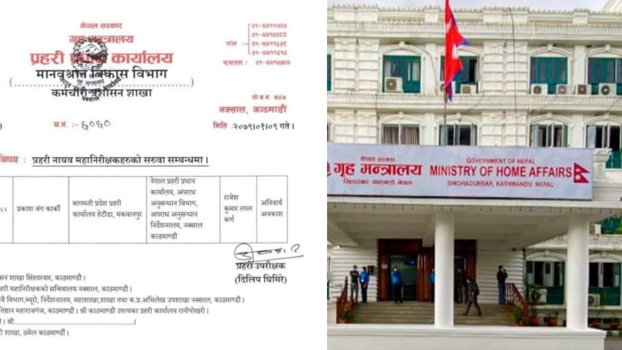 काठमाडौं । गृह मन्त्रालयले नेपाल प्रहरीका ९ जना प्रहरी नायव महानिरीक्षक (डीआईजी) हरुको सरुवा तथा पदस्थापन गर्दै प्रदेश प्रहरी प्रमुखहरु फेरेको छ । सरुवा तथा पदस्थापन सूचीअनुसार बागमती, लुम्बिनी, सुदूपश्चिम र मधेश प्रदेशका प्रहरी प्रमुख फेरिएका छन् । मन्त्रालयले बागमतीको जिम्मा डीआईजी पूजा सिंहलाई दिएको छ । लुम्बिनीमा नलप्रसाद उपाध्याय, सुदूपश्चिममा मोहनकुमार आचार्य र मधेशमा […]
