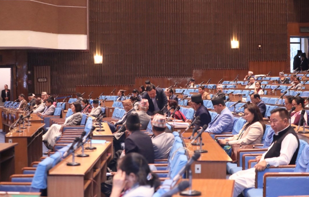 काठमाडौँ । प्रतिनिधिसभाको मङ्गलबार आजका लागि तय भएको बैठक बस्दै नबसी बुधबार सम्मका लागि स्थगित भएको छ । आज बिहान ११ बजेका लागि तय भएको बैठक २ बजेसम्मका लागि स्थगित भएको थियो । त्यसपछि पनि बैठक बस्न नसकेपछि बुधबार दिउँसो १ बजे बस्ने गरी बैठक स्थगित गरिएको संसद सचिवालयले जनाएको छ । त्यस्तै विपक्षी दलहरु […]