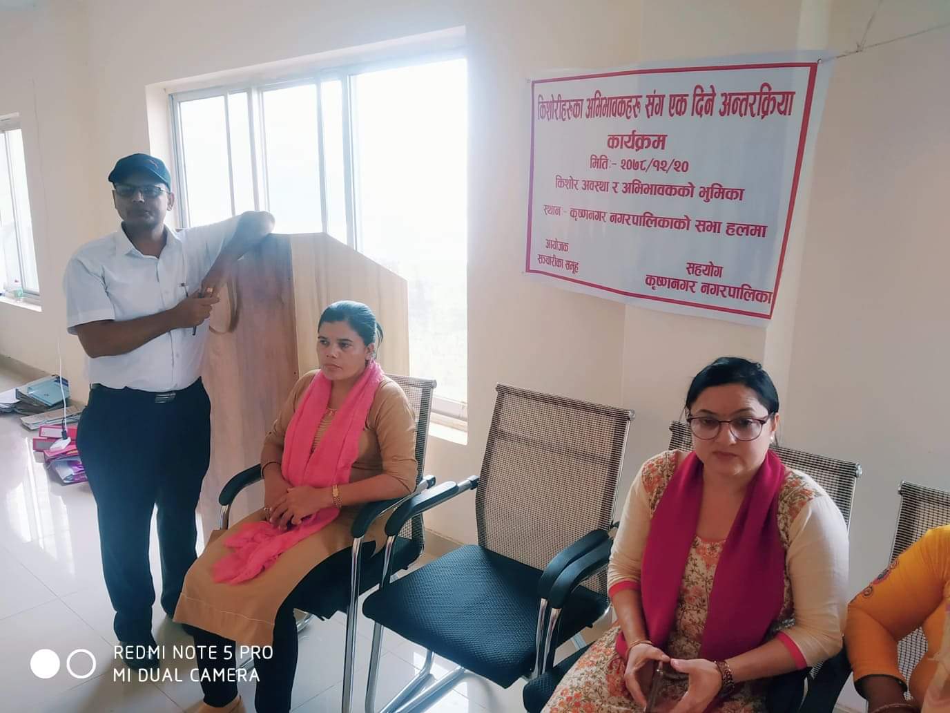 कपिलवस्तु । कपिलवस्तु जिल्लाको कृष्णनगरम नगरपालिकाको सभा हलमा किशोरीका अभिभावकहरू संग एक दिने अन्तरक्रिया कार्यक्रम किशोर अवस्था र अभिभावकको भूमिका भनाईका साथ संचारिका समुहको आयोजना तथा कृष्णनगर नगरपालिकाको सहयोगमा सम्पन्न भएको छ । संचारीका समुहकी अध्यक्ष पार्वती आचार्यको अध्यक्षता प्रमुख अतिथिमा कृष्णनगर नगरपालिकाका प्रमुख प्रशासकीय अधिकृत राम चन्द्र ढकाल,विशिष्ट अतिथि संचारीका समुह लुम्बिनी प्रदेश पूर्व […]