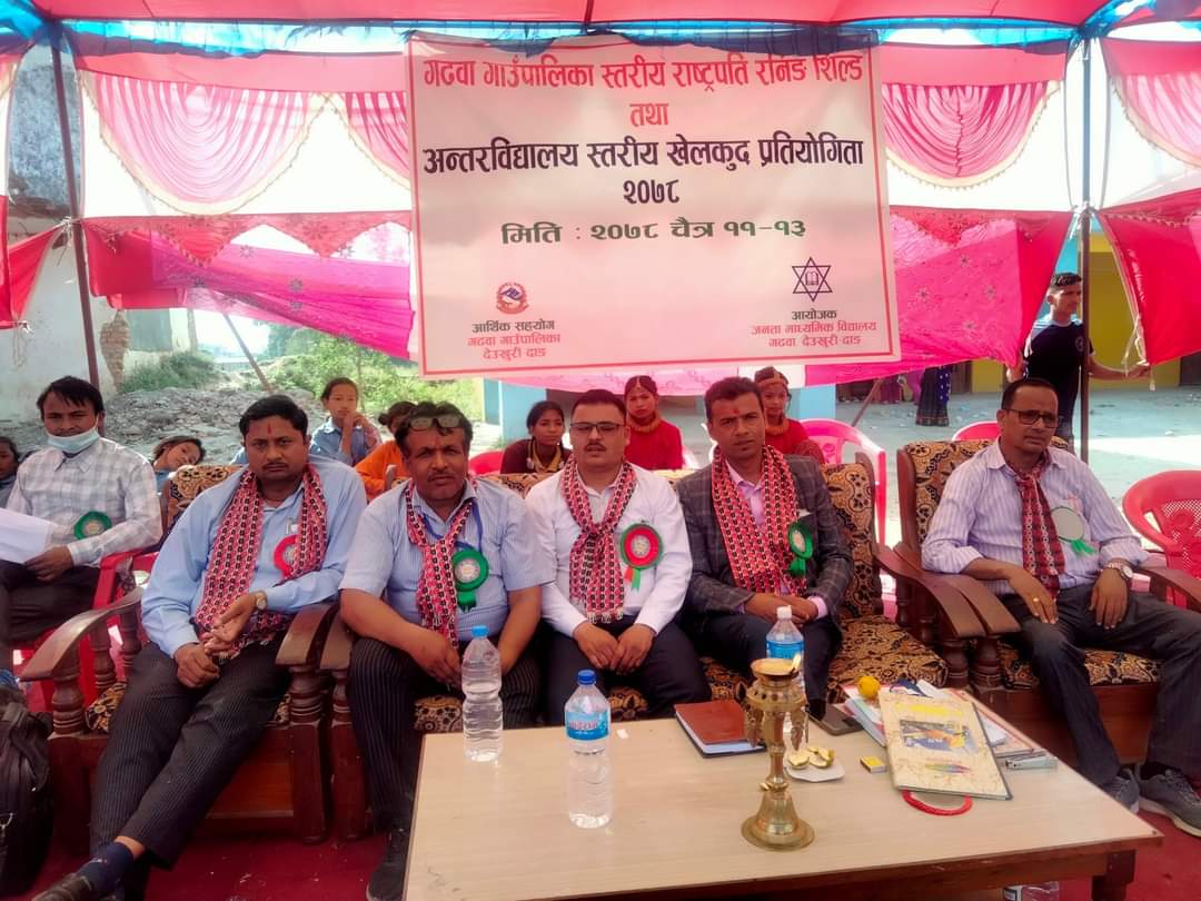 दाङ । देउखुरीको गढवा गाउँपालिका स्थित जनता माध्यमिक बिद्यालय गढवामा शुक्रवार बिभिन्न तामझामका साथ पालीका स्तरीय राष्ट्रपति रनिङ शिल्ड प्रतियोगिता सुरु भएको छ । गढवा गाउँपालिकाभरका सरकारी तथा निजी क्षेत्रका ३६ बढी बिद्यालयहरुको बिविध भेषभुषा सहितको मार्चपास पछि गाउँपालिकाका अध्यक्ष सहजराम यादवले सो कार्यक्रमको उद्घाटन गर्नुभएको हो । बिद्यालय ब्यवस्थापन समितिका अध्यक्ष युवराज पोखे्रलको अध्यक्षता […]