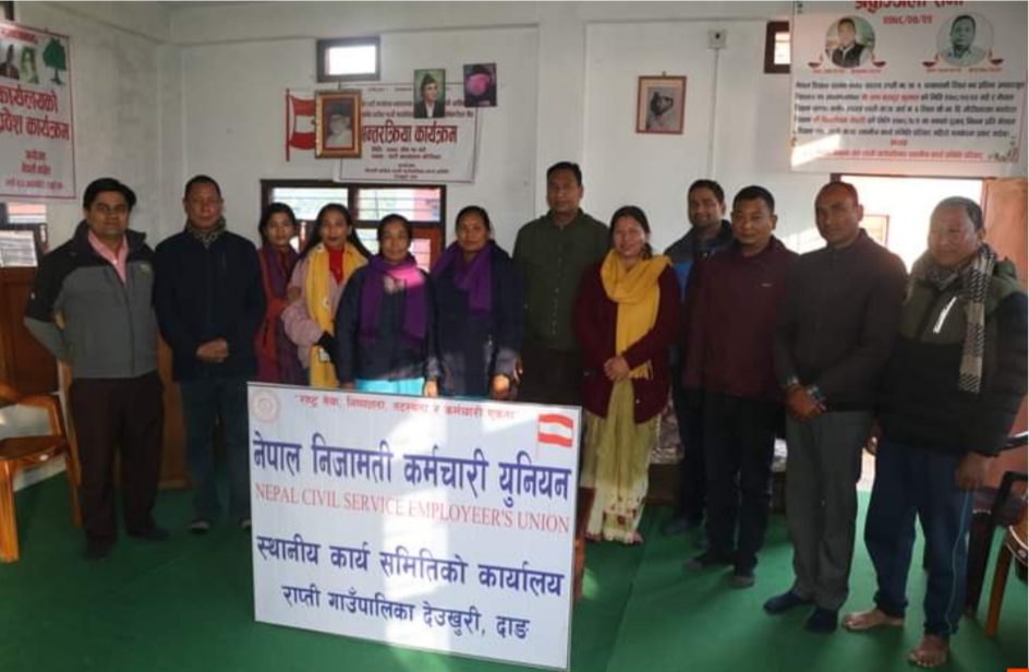 दाङ । नेपाल निजामति कर्मचारी युनियन राप्तीको कार्यालय स्थापना गरिएको छ । देउखुरीको राप्ती गाउँपालिका वडा नम्बर ४ मौरीघाटमा रहेको नेपाली कांग्रेस पार्टीको कार्यालय रहेको ठाउँमा विधिबध रुपमा कार्यालय स्थापना गरिएको हो । कर्मचारी युनियन राप्तीका अध्यक्ष मंगलप्रसाद चौधरी उपाध्यक्ष शेरबहादुर हमाल, सरिता चौधरी, सचिव बासुदेव खनाल, सदस्य चौधरी, शिवराज चौधरी लगायतको सहभागिता रहको थियो […]
